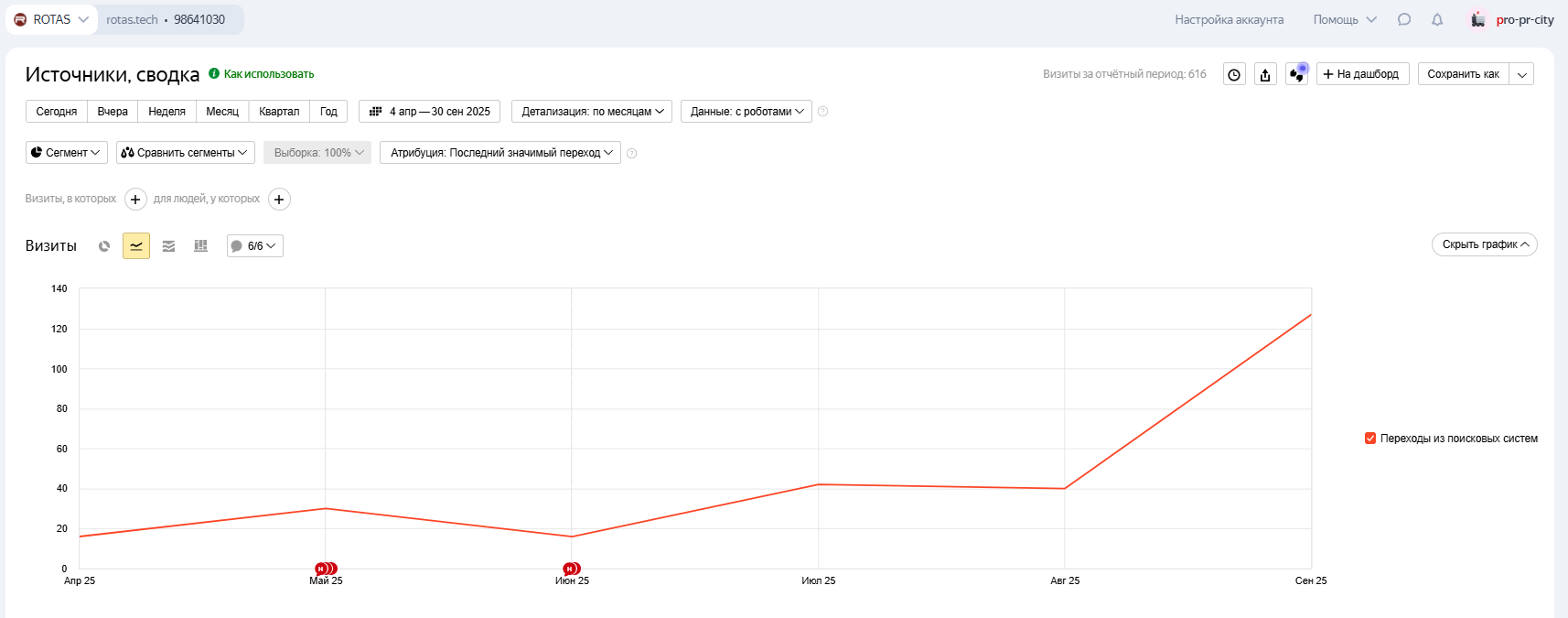 Проблема: Когда производитель промышленных вентиляторов ROTAS обратился в наше агентство, сайт компании практически не привлекал целевых посетителей. Несмотря на современное оборудование и конкурентные цены, в интернете компания была практически не видна. Всего 18 пользователей в месяц из поисковых систем — катастрофически мало для предприятия, способного закрывать крупные промышленные заказы.