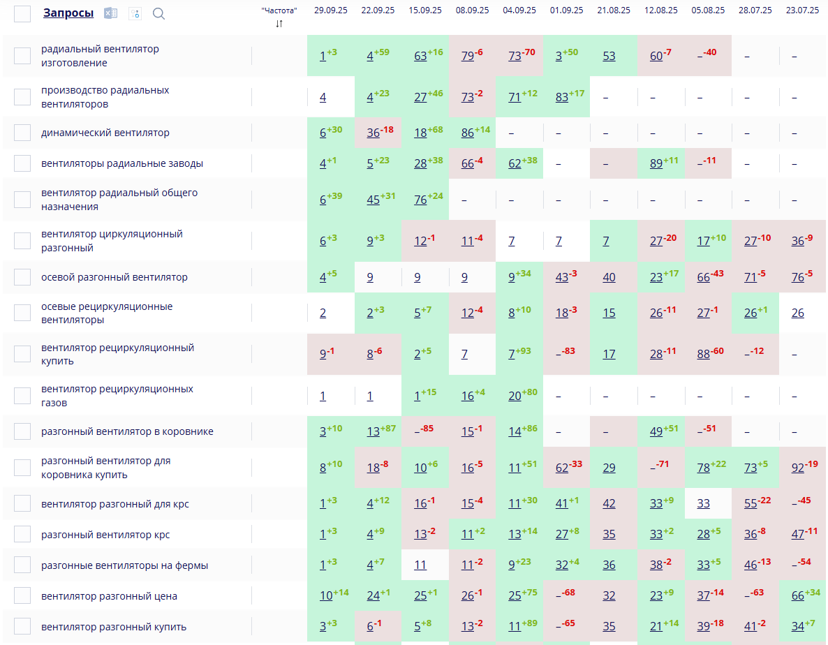 - Увеличить видимость сайта в поисковых системах по высококонкурентным запросам в сфере промышленной вентиляции;