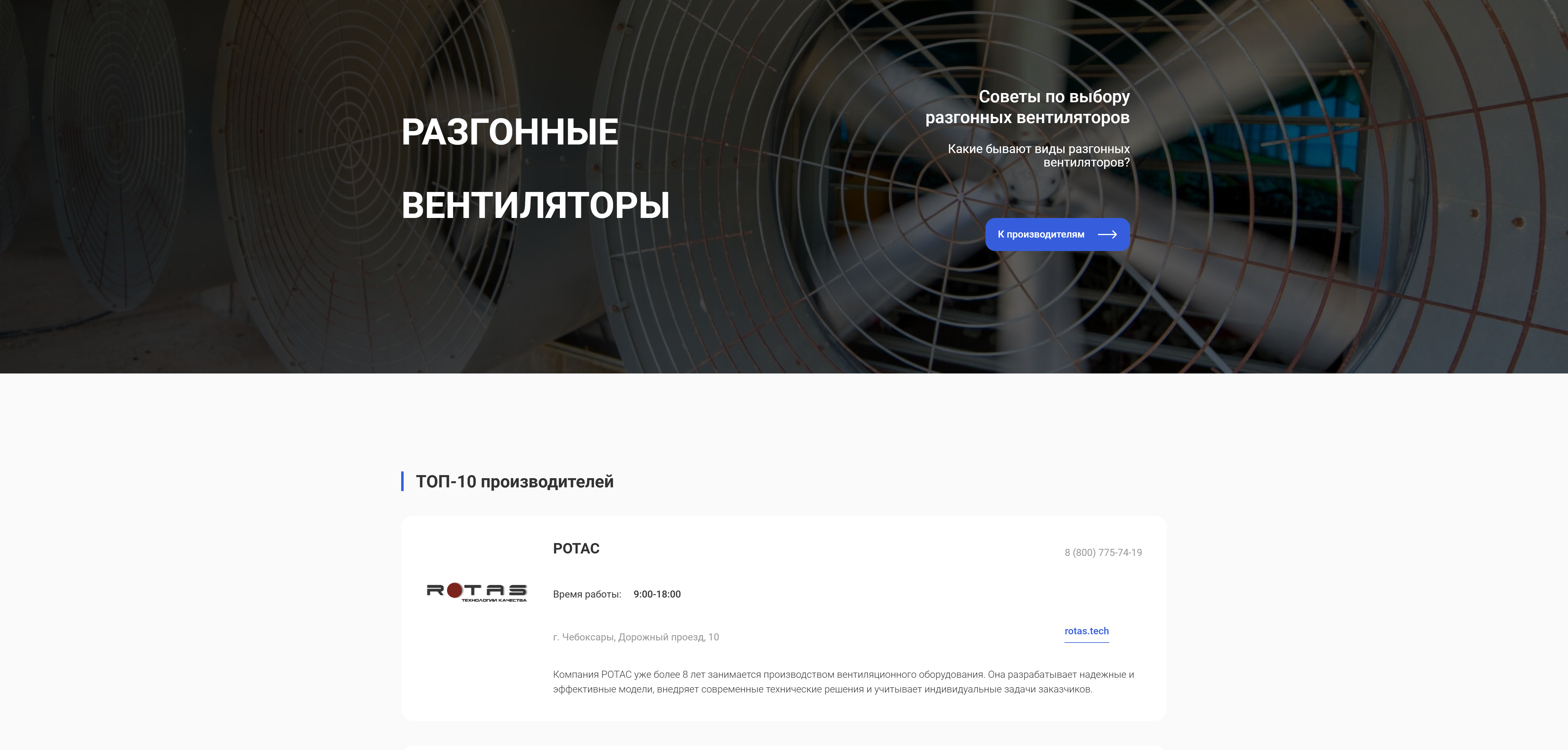 - Разработка и запуск новых страниц категорий: «Радиальные вентиляторы», «Вытяжки для производственных помещений» и другие;