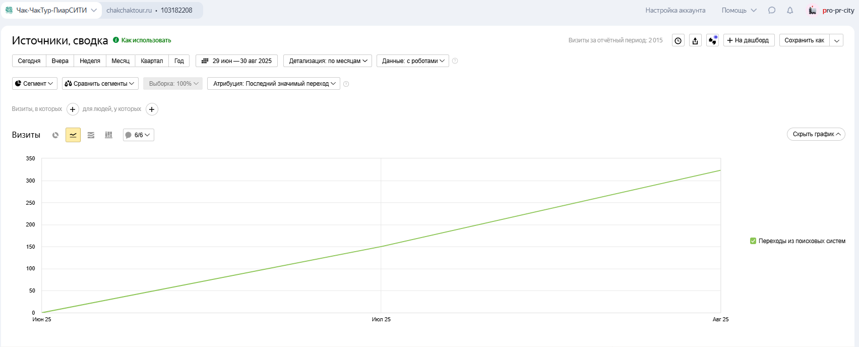 Продвижение сайта турфирмы - рост трафика с 3 до 325 посетителей