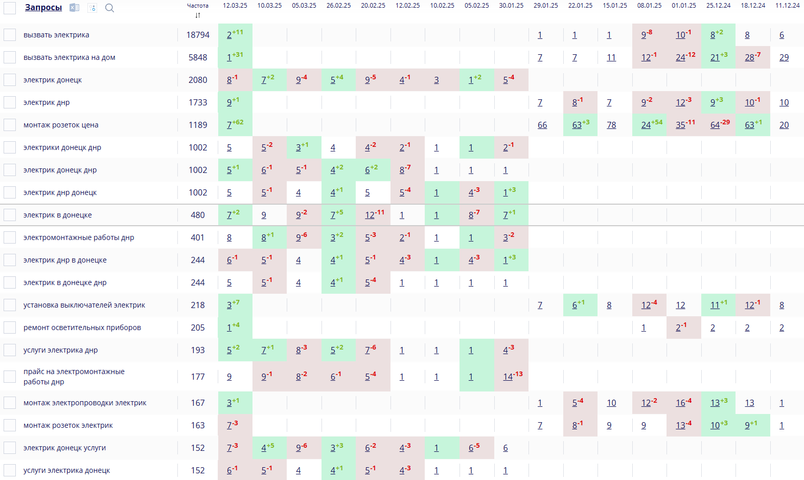 - Собрать и кластеризовать ключевые запросы по электромонтажным работам в регионе;