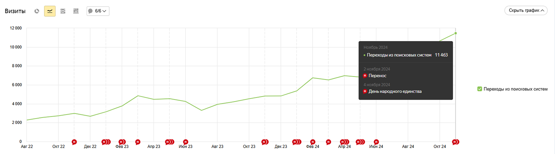 Важно понимать: SEO не даёт мгновенный результат, оно включается на полную через 6-12 месяцев, но зато потом работает стабильно и дёшево.