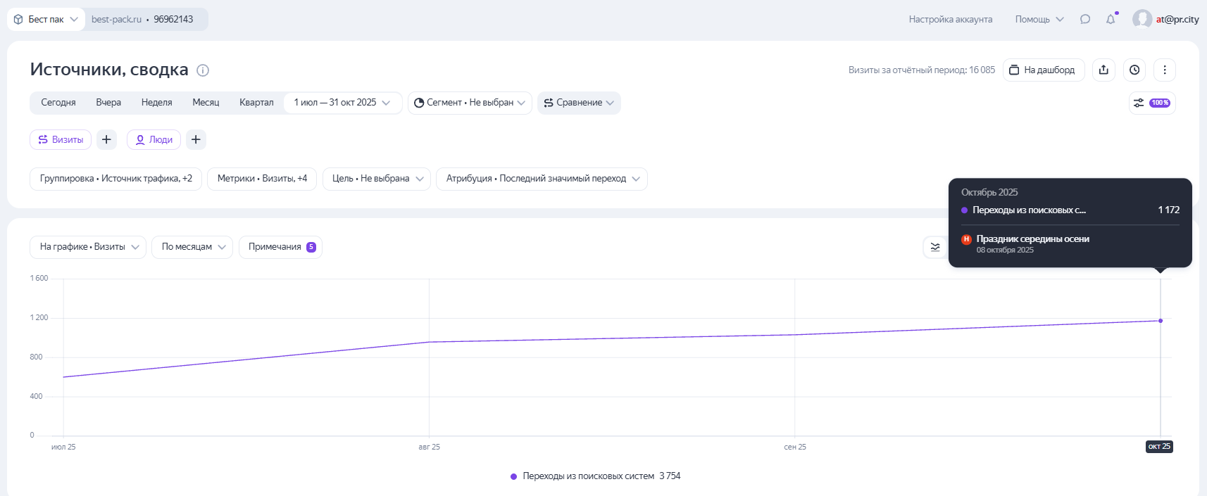 2 марта 2026Клиент: «БЕСТ ПАК» (сайт best-pack.ru) — поставщик промышленного и складского оборудования, включая упаковочные машины, пищевое оборудование, чиллеры, штабелеры и паллетообмотчики.