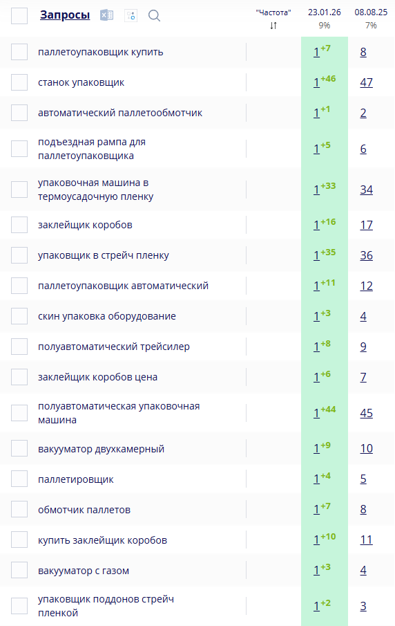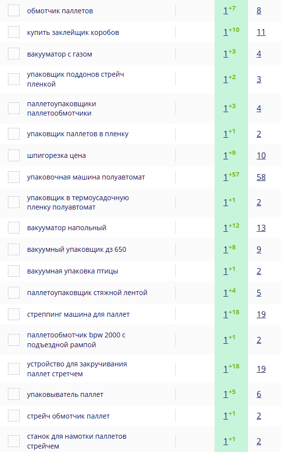 - Упаковочное оборудование — выход в ТОП-10 Яндекса по высокочастотным запросам;