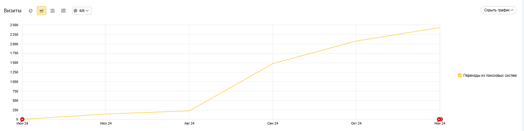 Продвижение сайта сантехника: рост трафика с 0 до 2431 за 6 месяцев