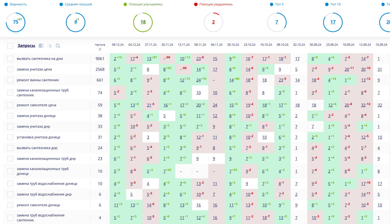- Сайт вышел в топ-10 по ключевым запросам: “сантехник + город”, “услуги сантехника”, “замена труб”, “вызов мастера”;